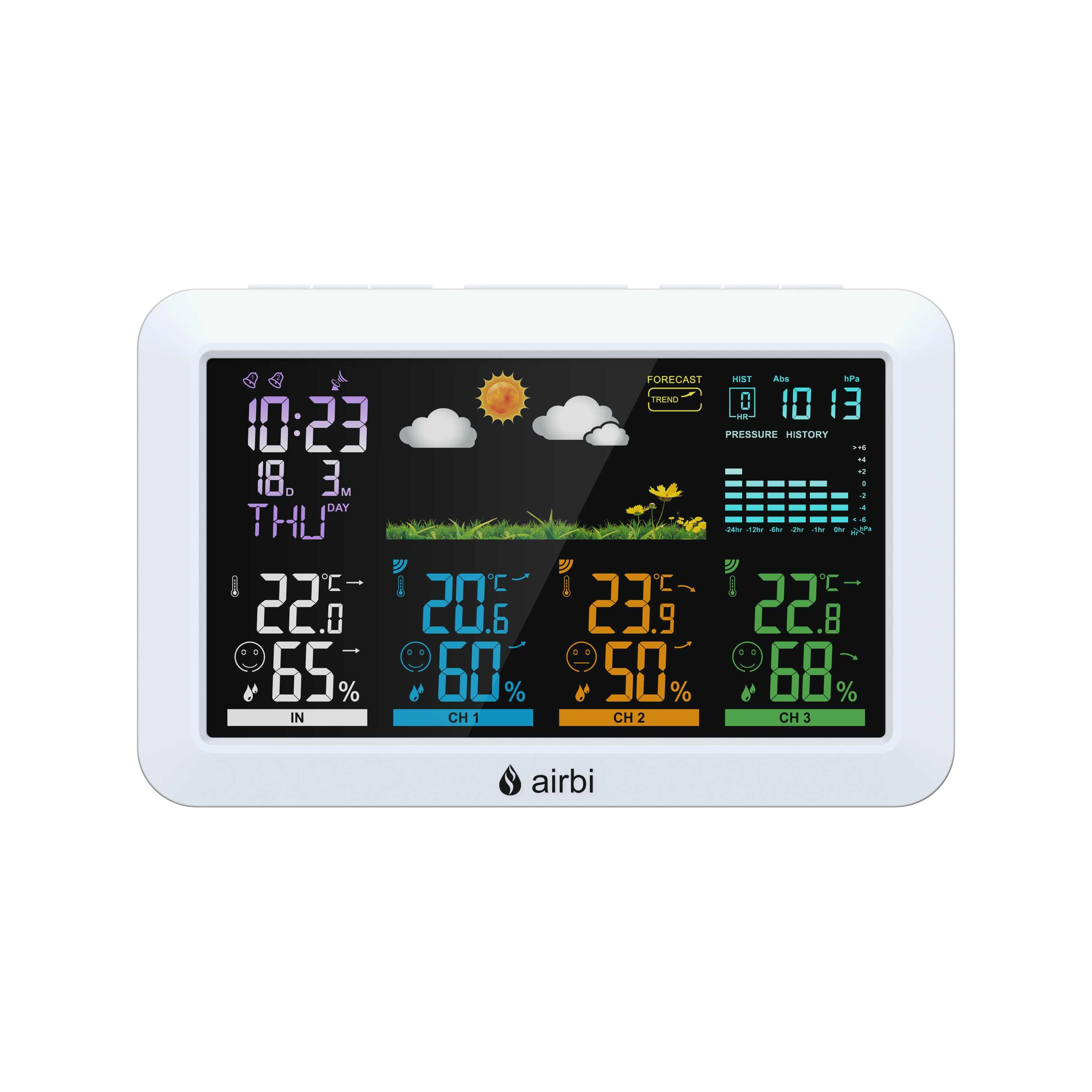 Airbi HOME is an exceptionally well-equipped weather station with 3 sensors.